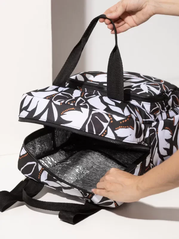 En el interior posee: un compartimiento para llevar tu termo y no se vuelque ( entra un termo Stanley de 1.5 lts. ), otro para llevar tu mate, y un bolsillo para que lleves lo que quieras!